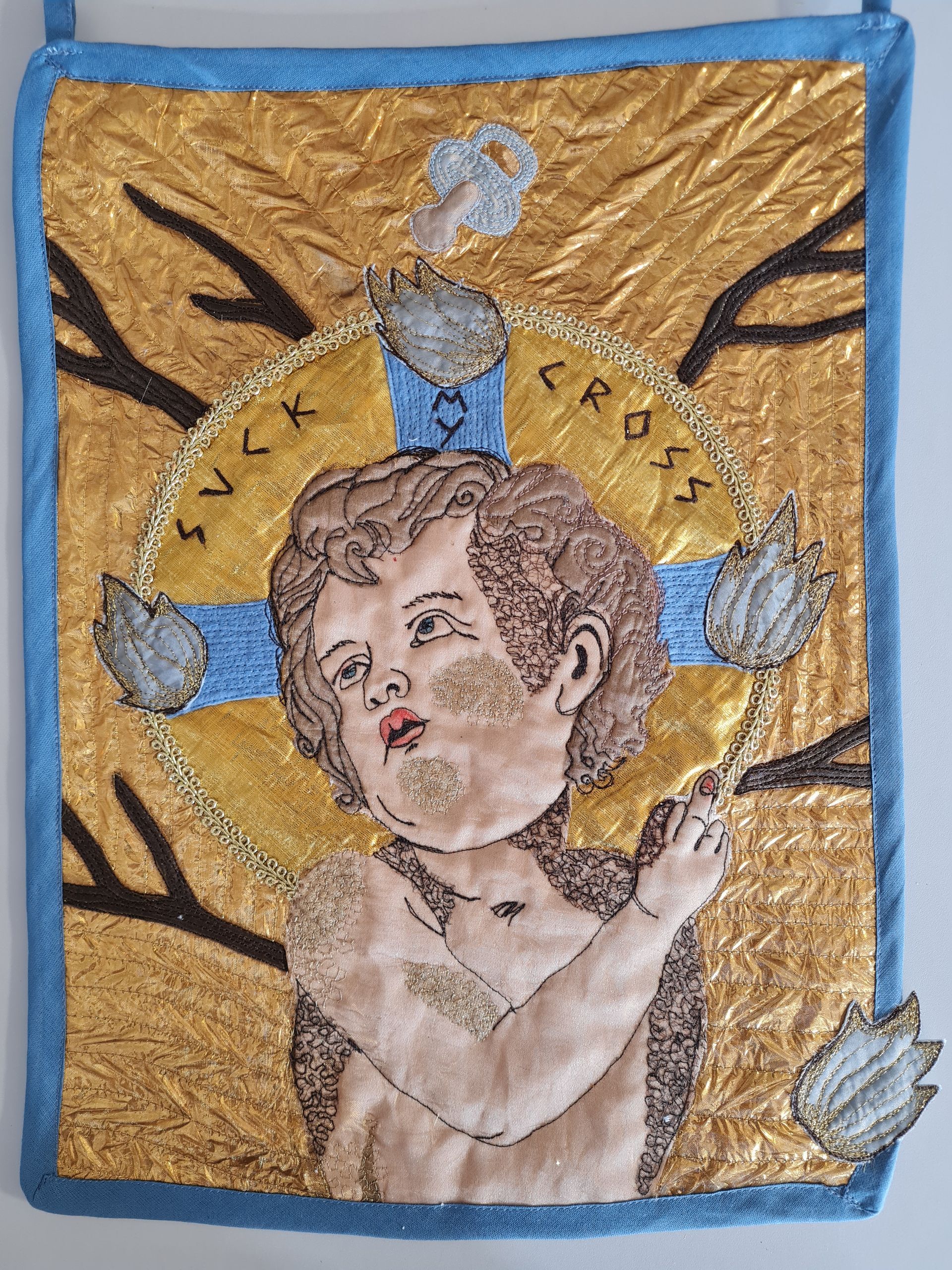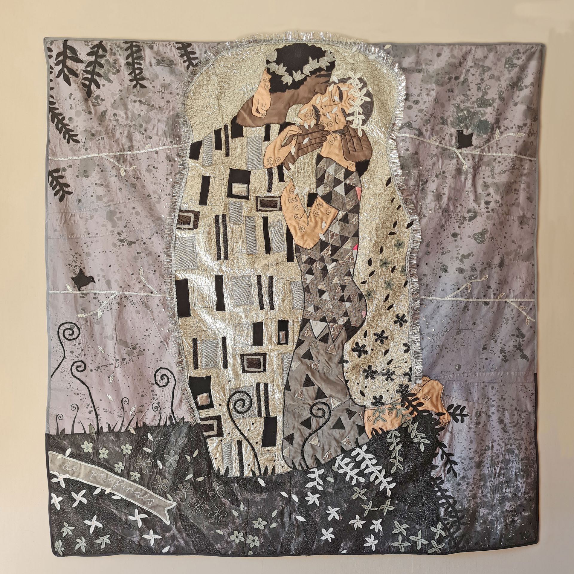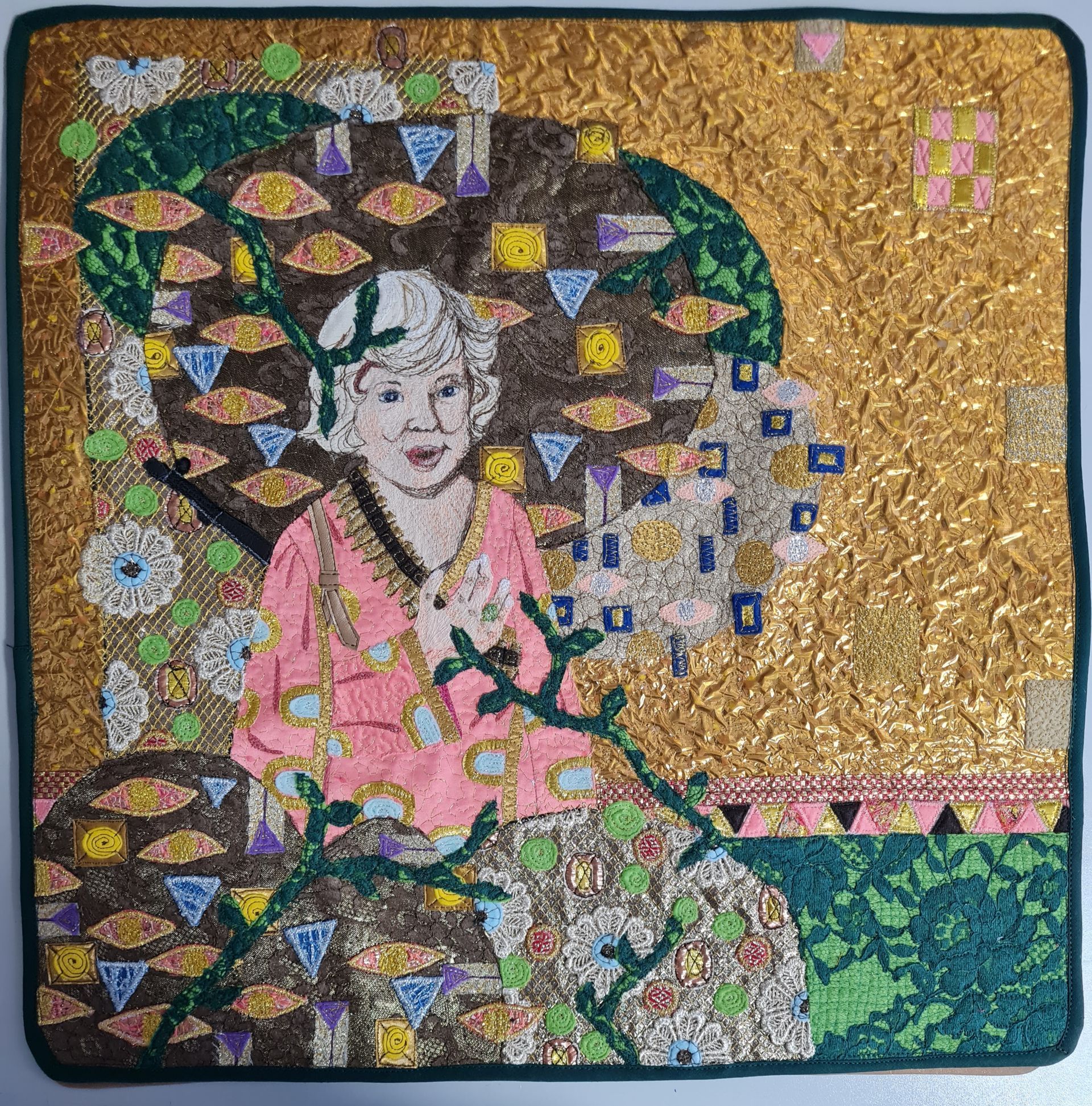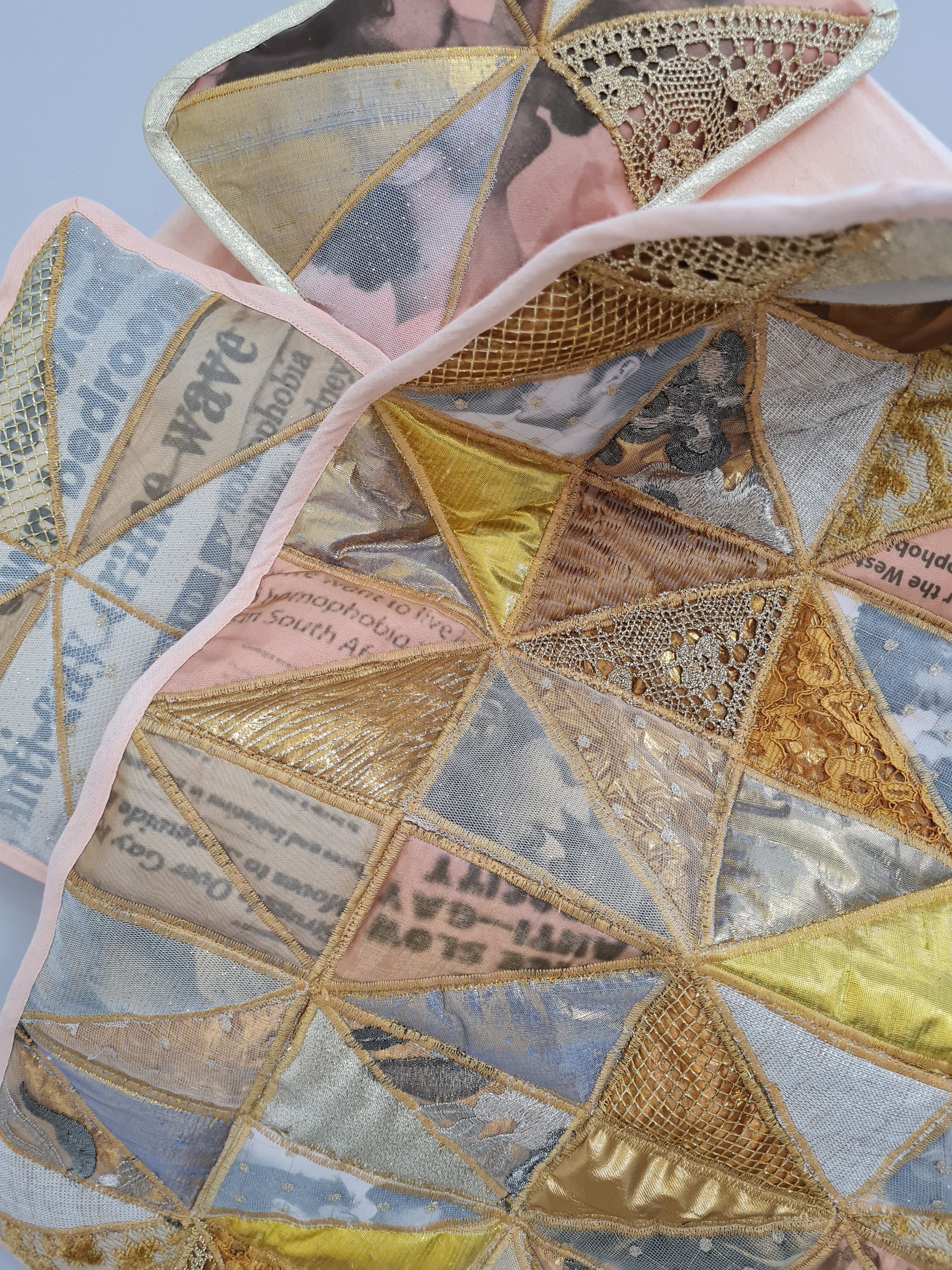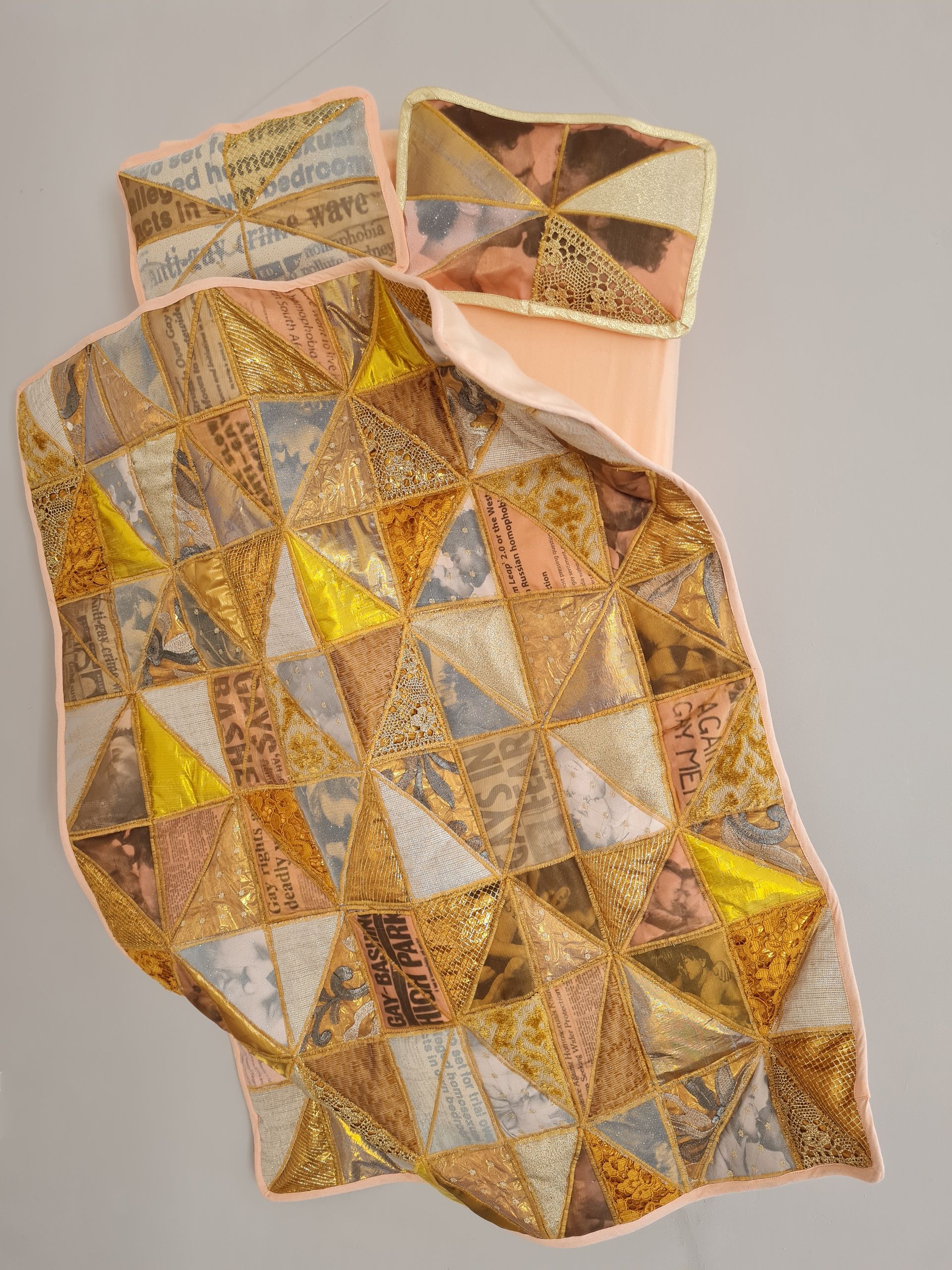 55/55 cm. - various textiles, gold foil, machine embroidery