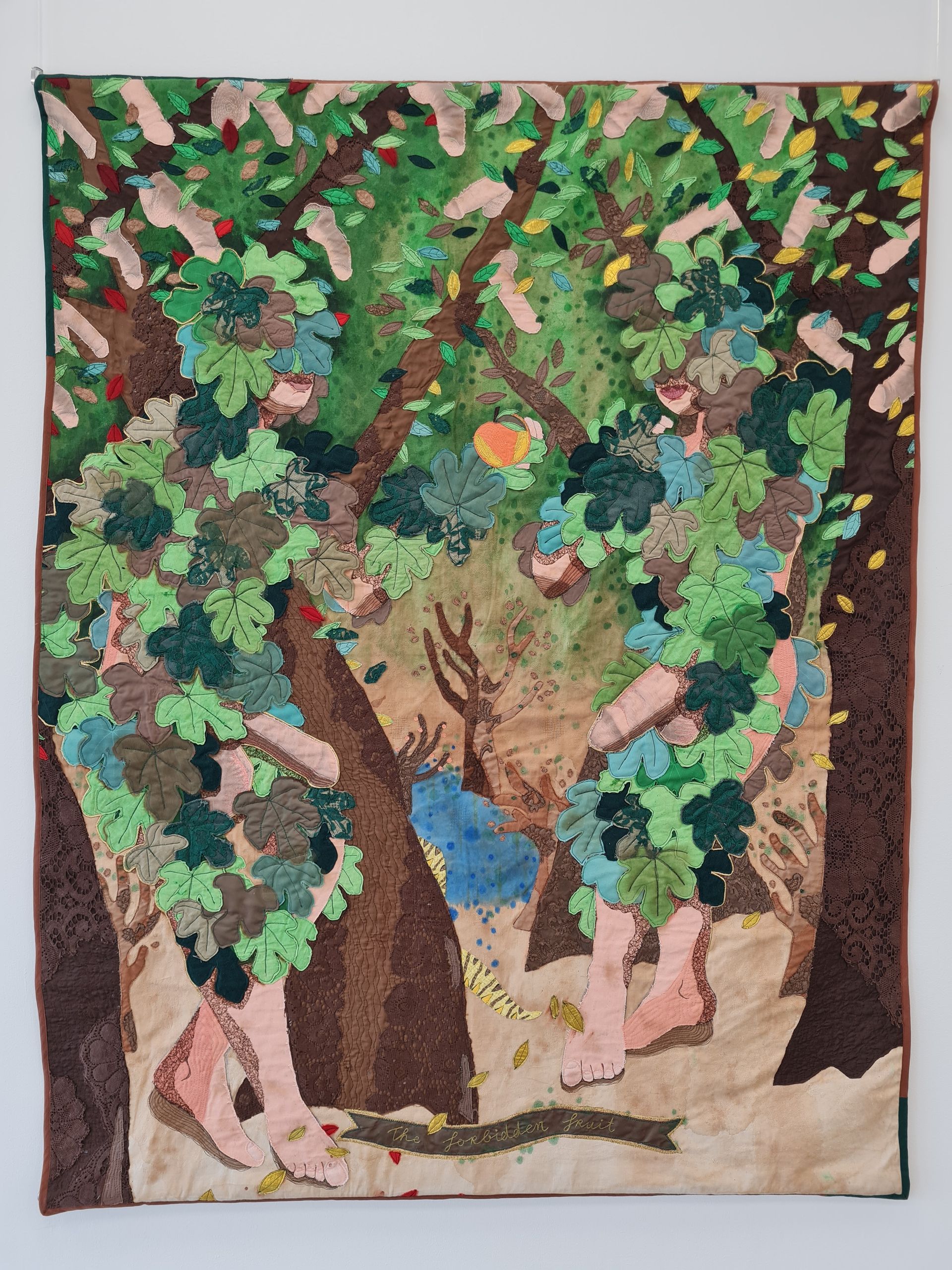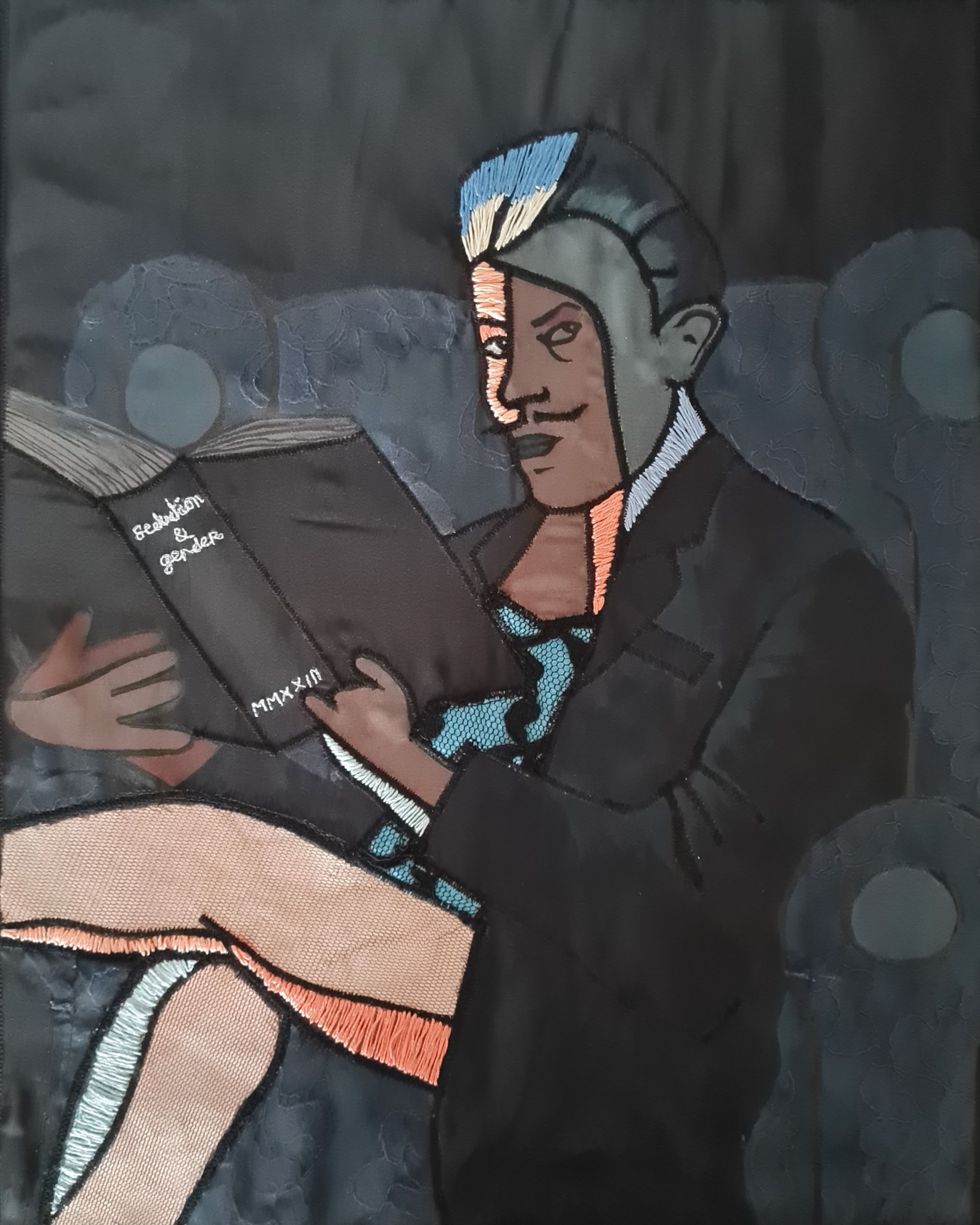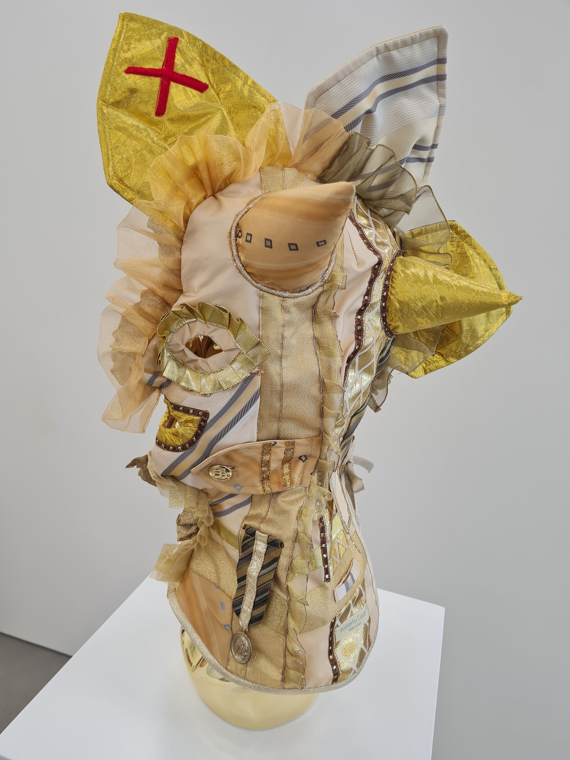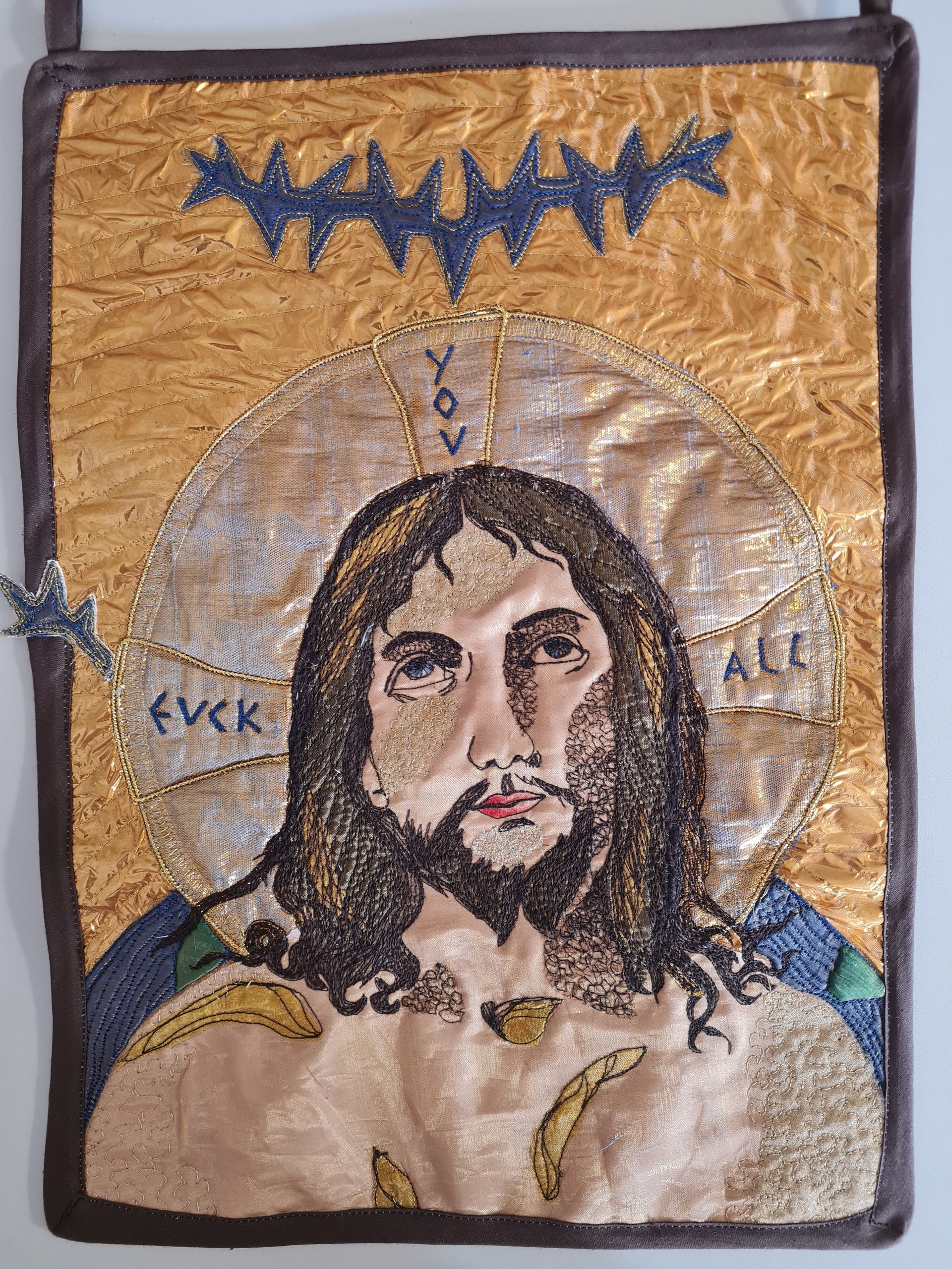 55/55 cm. - various textiles, gold foil, machine embroidery