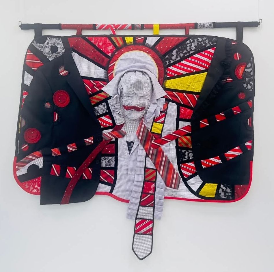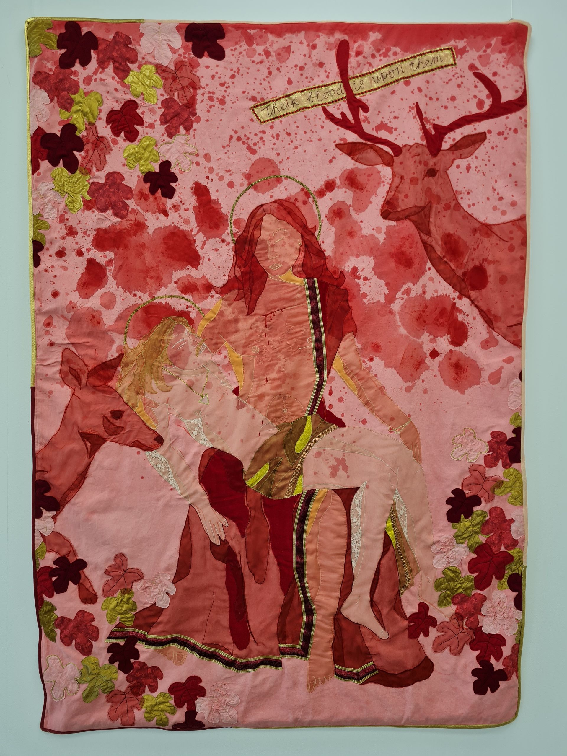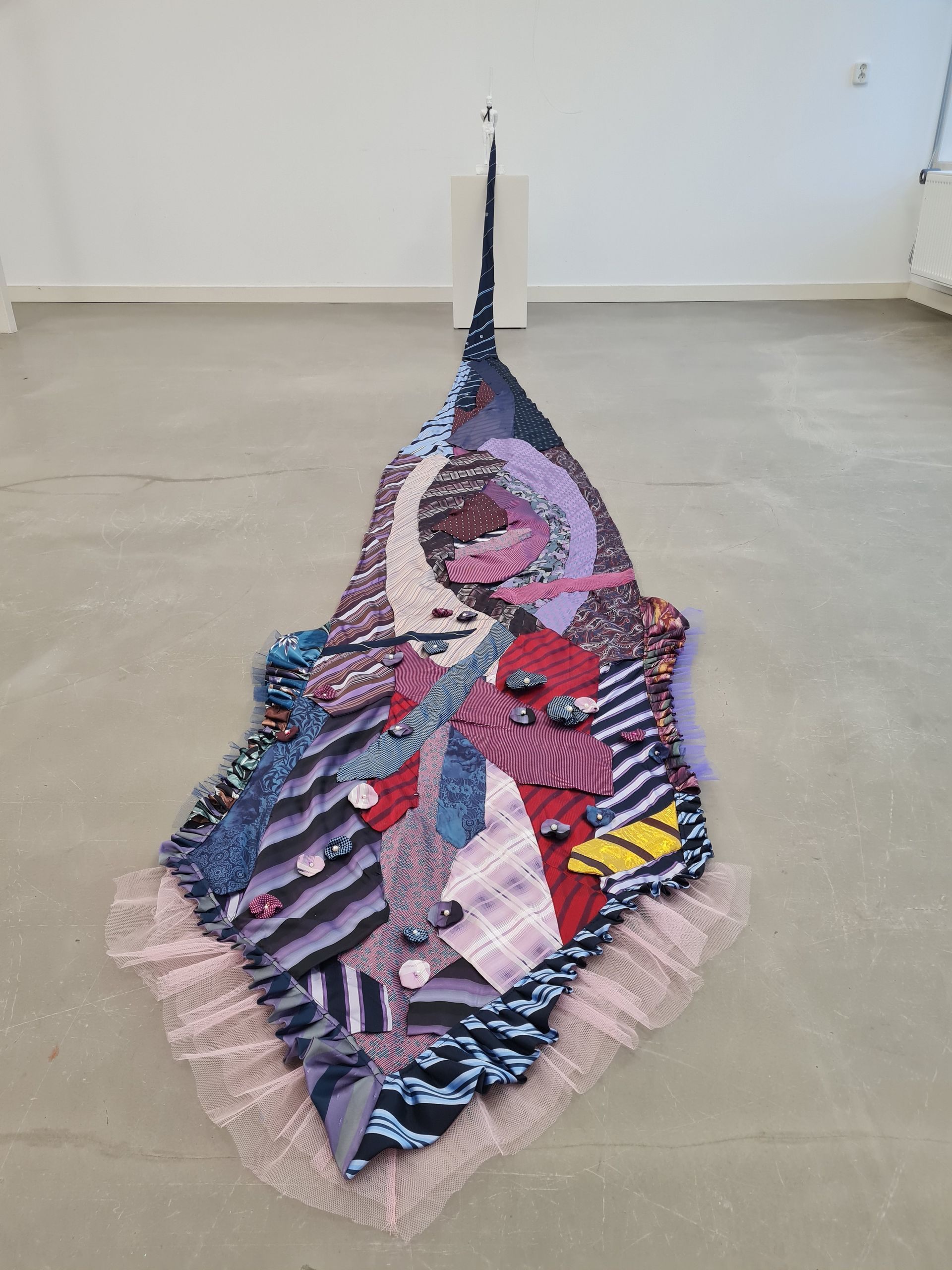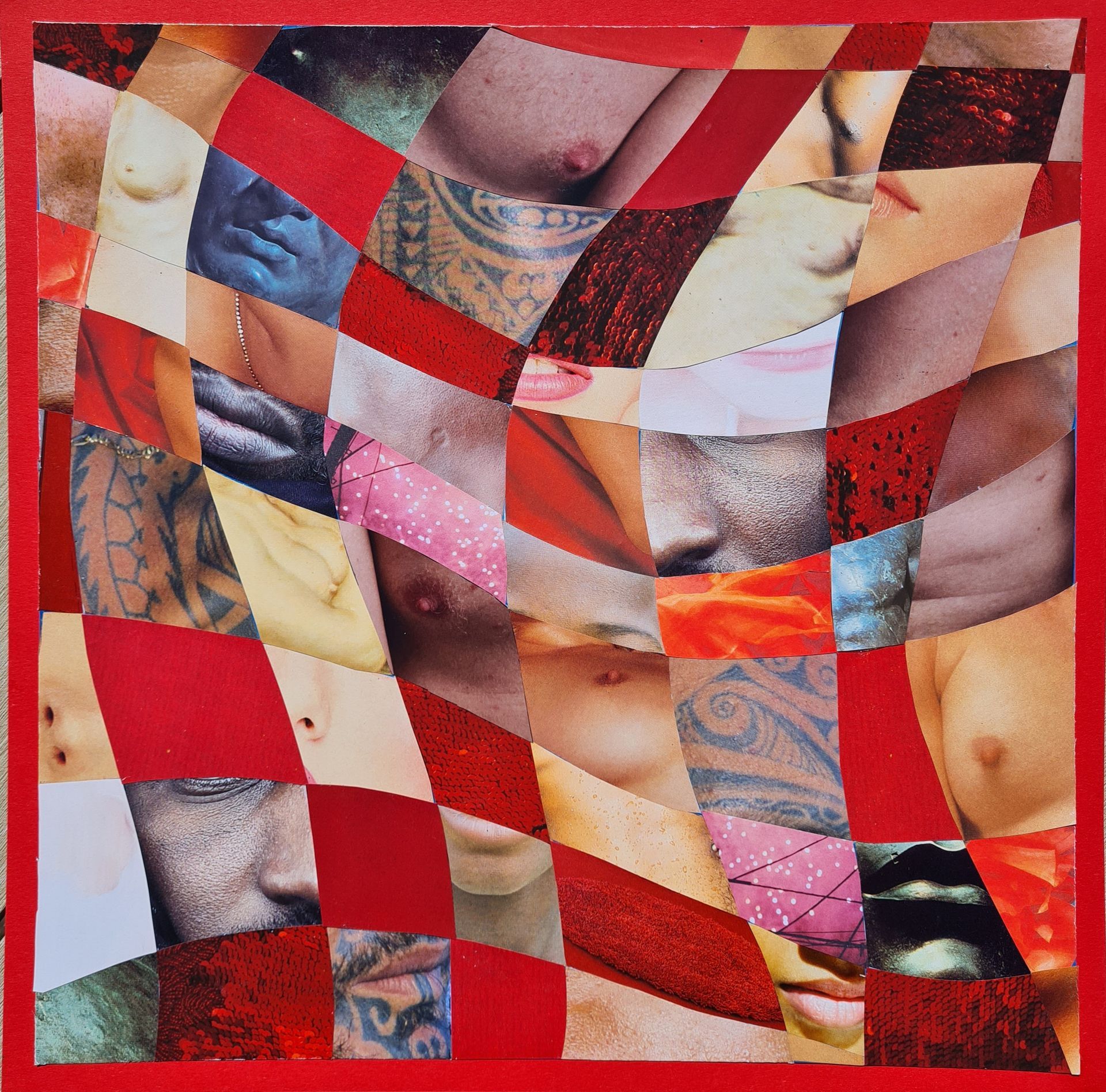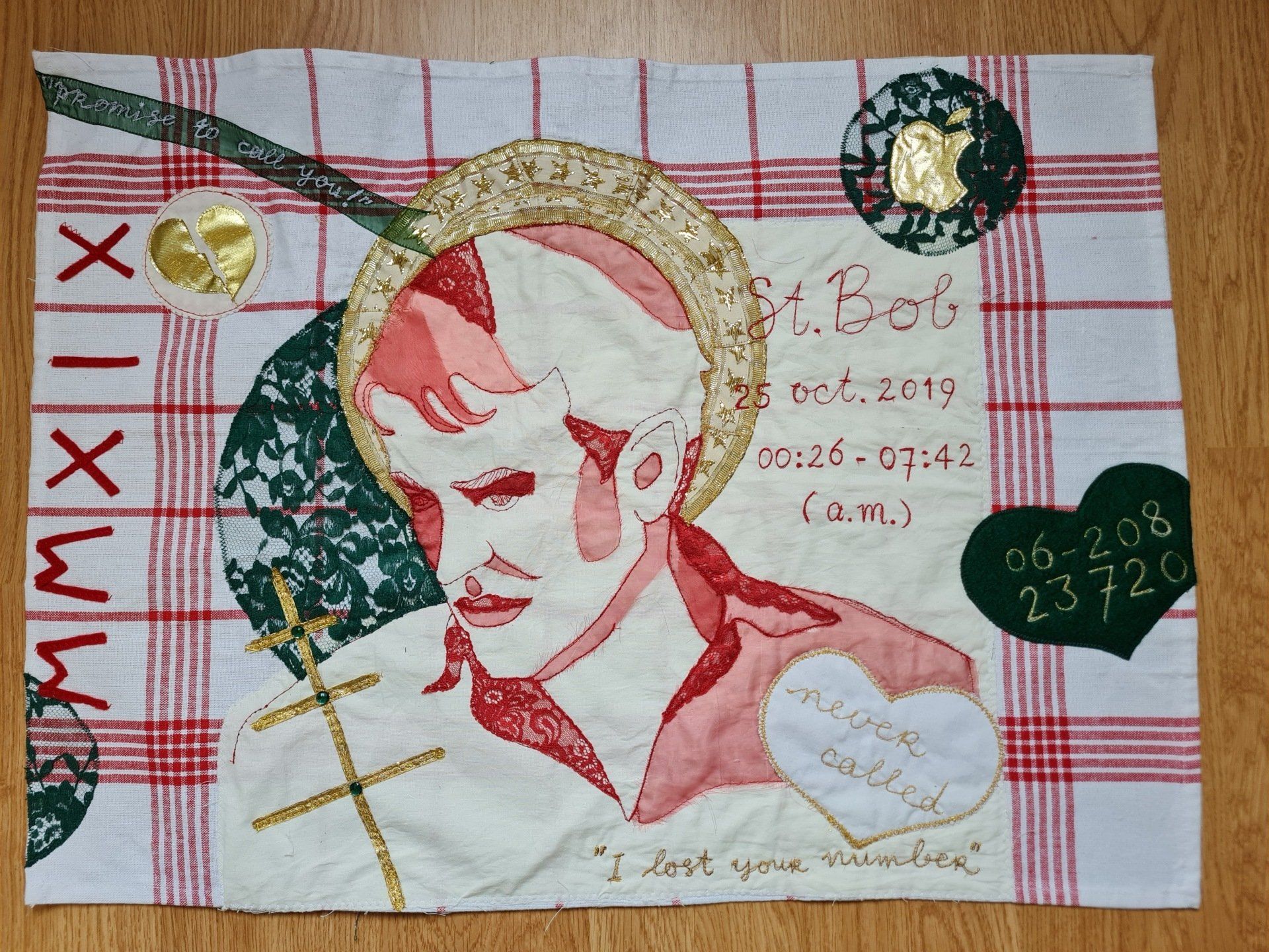 55/55 cm. - various textiles, gold foil, machine embroidery