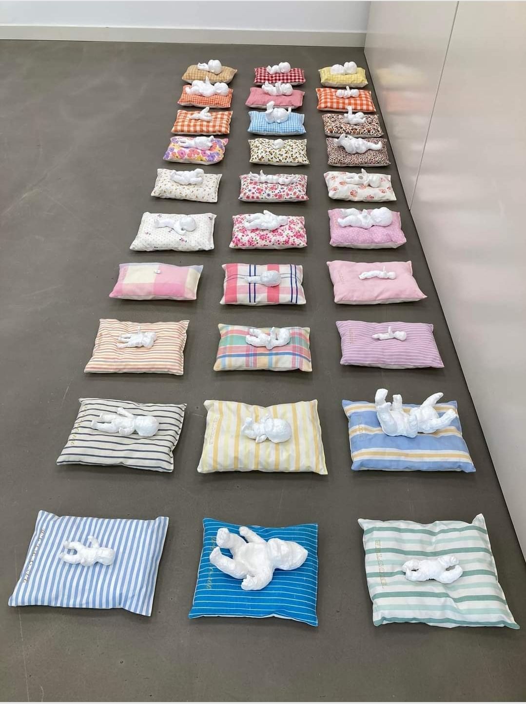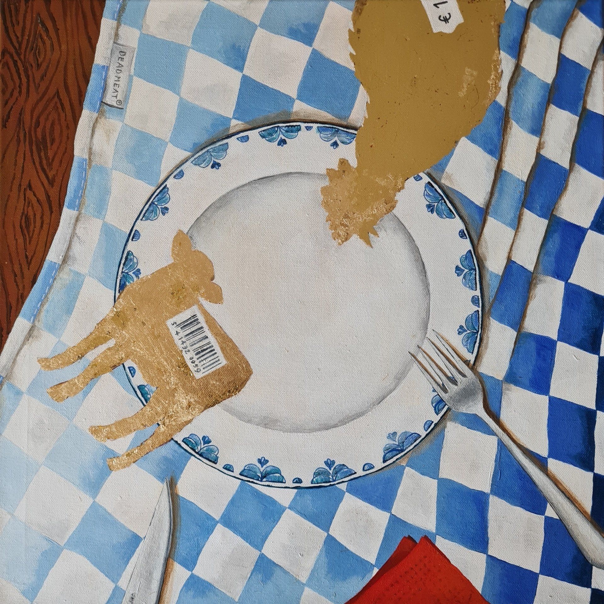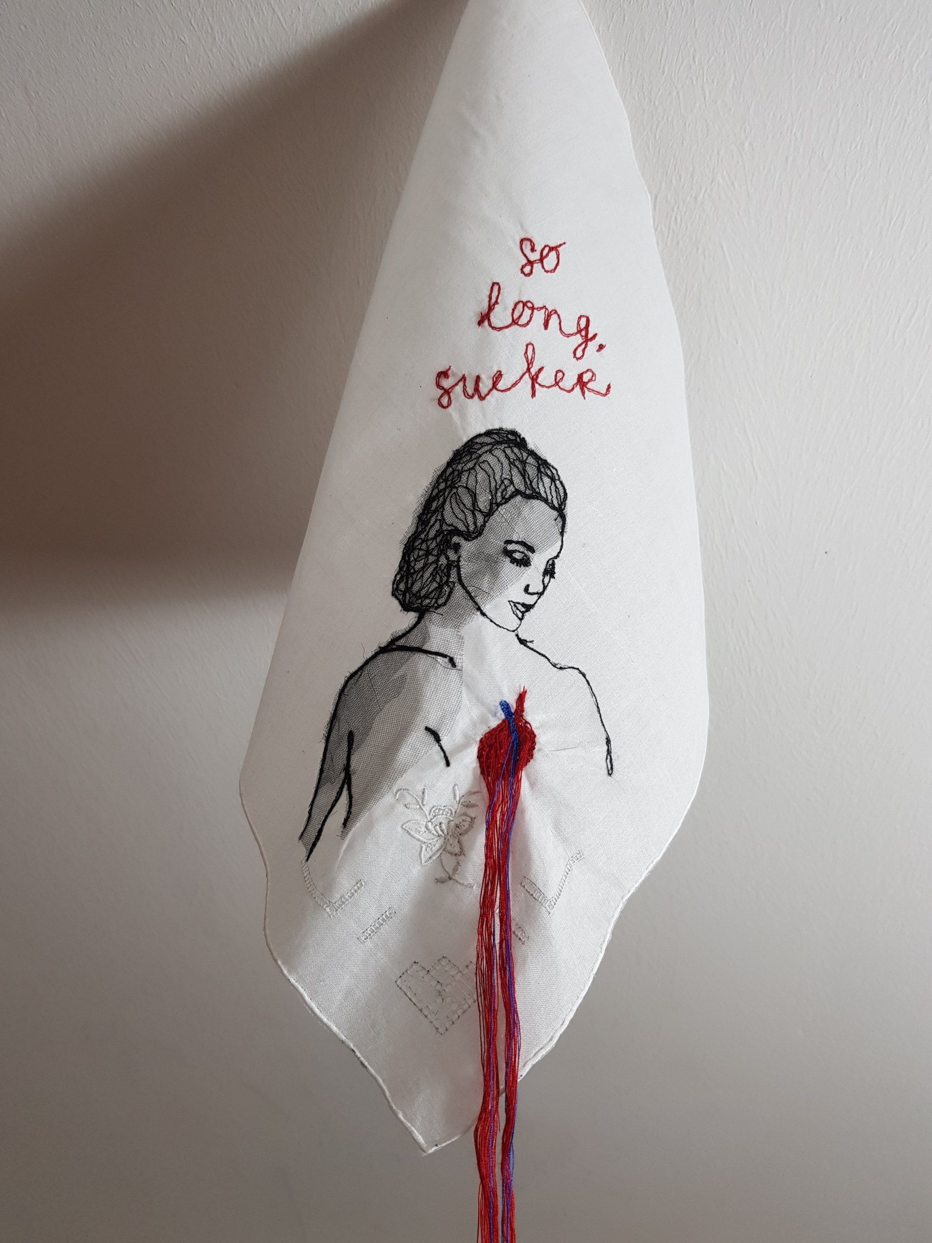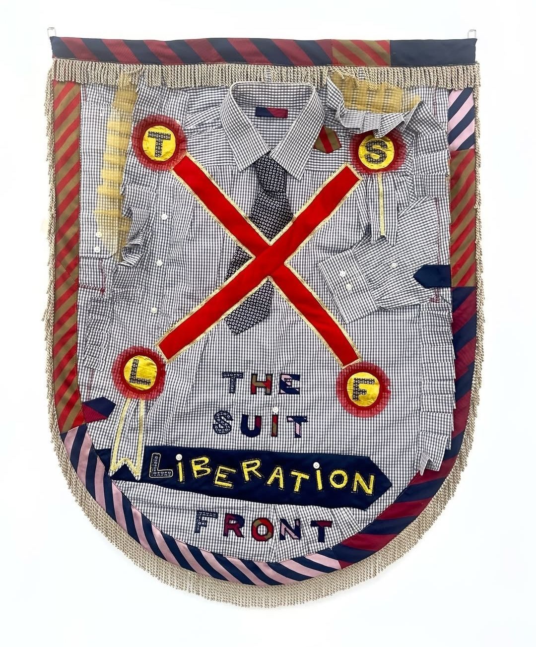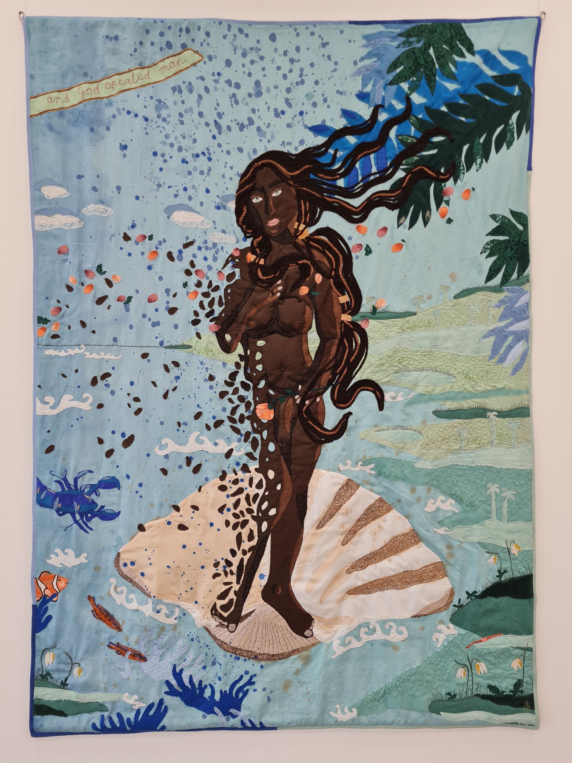55/55 cm. - various textiles, gold foil, machine embroidery