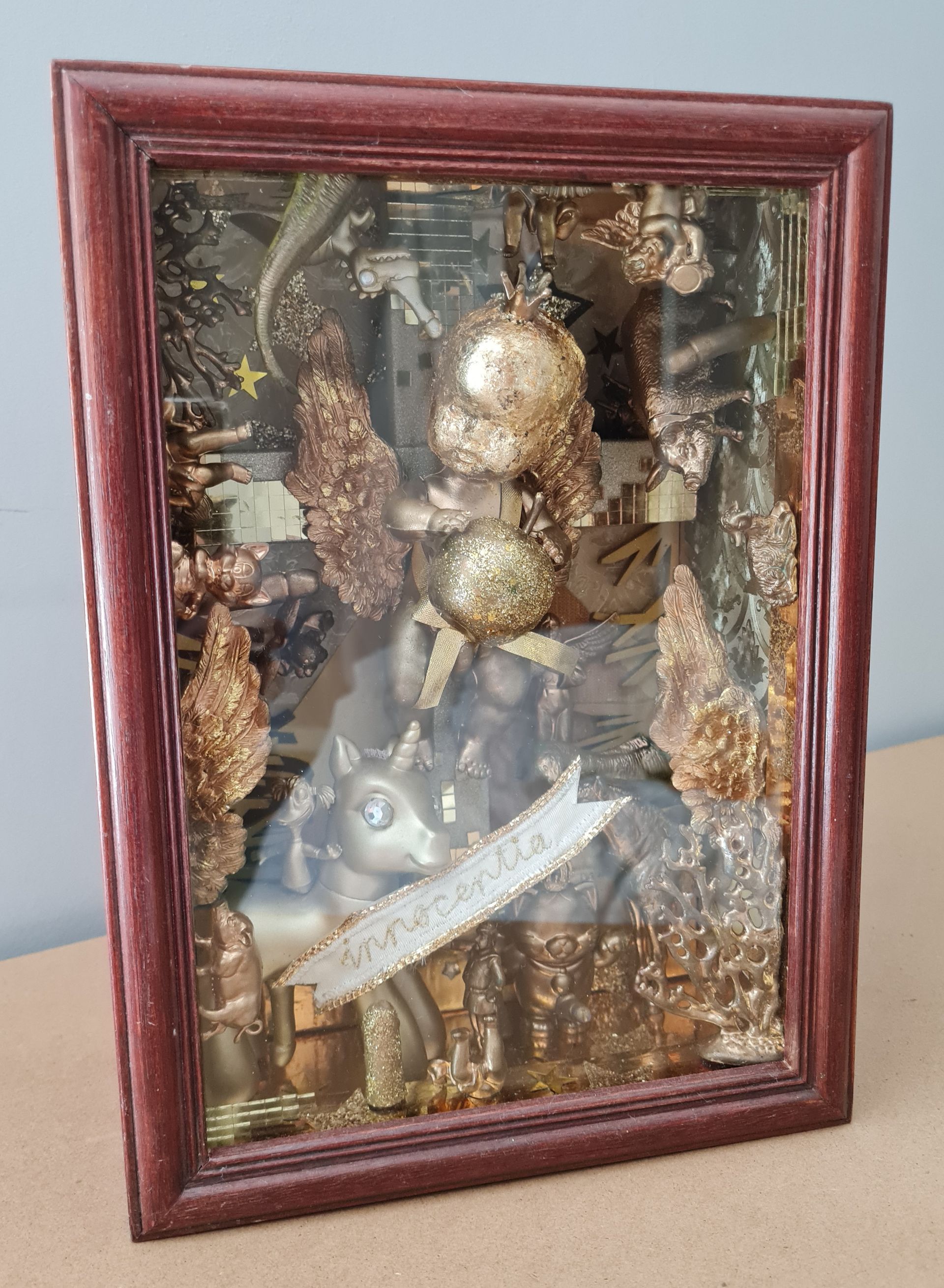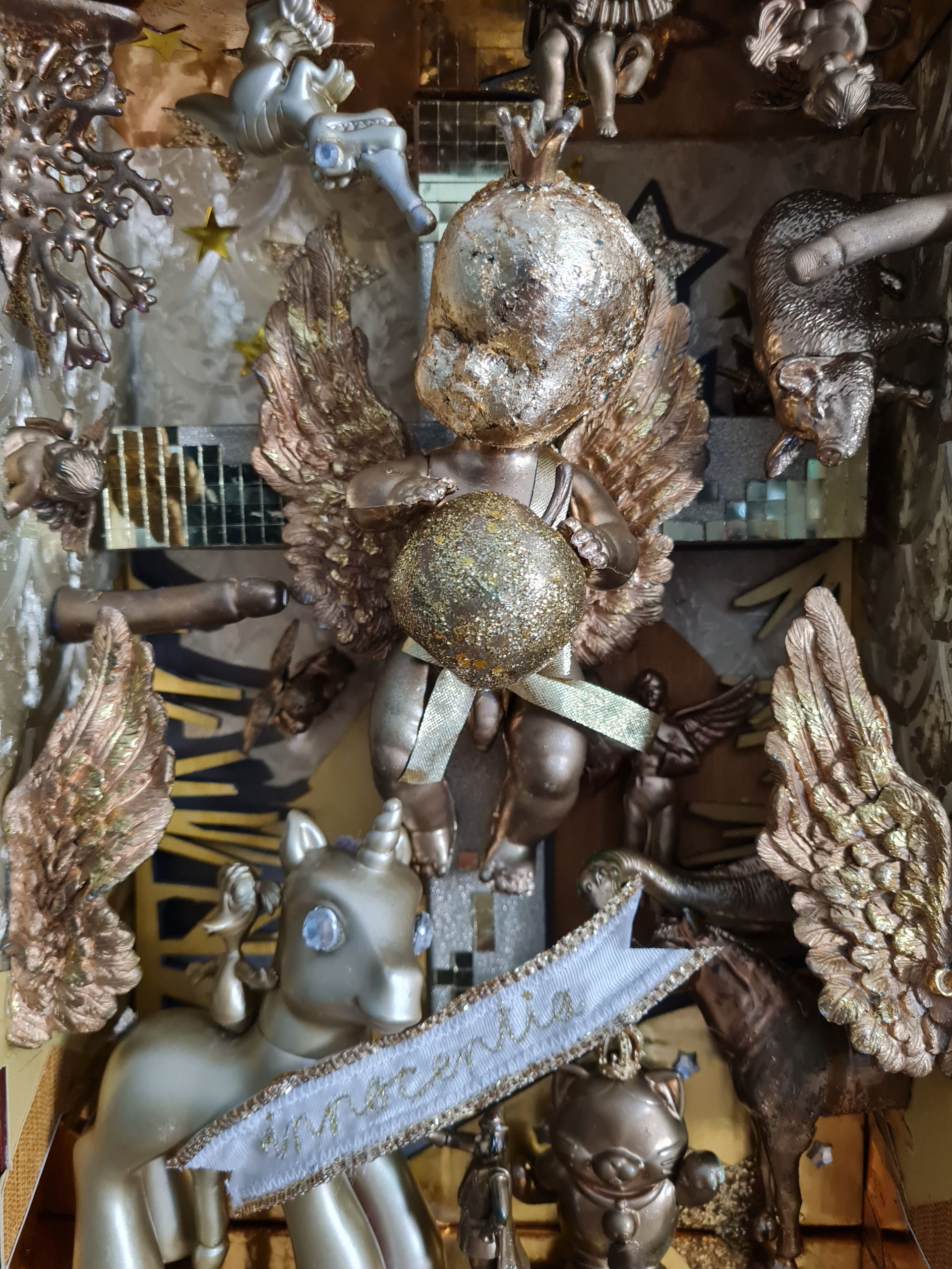 Appr. 10 cm. - tin, rhinestones, ribbon